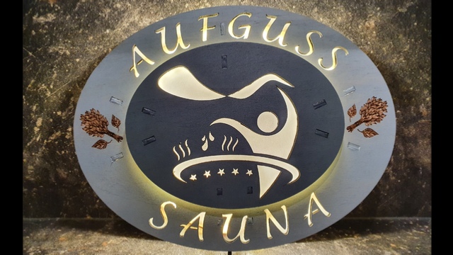 Wanddeko: Schild (Auguss Sauna) beleuchtet